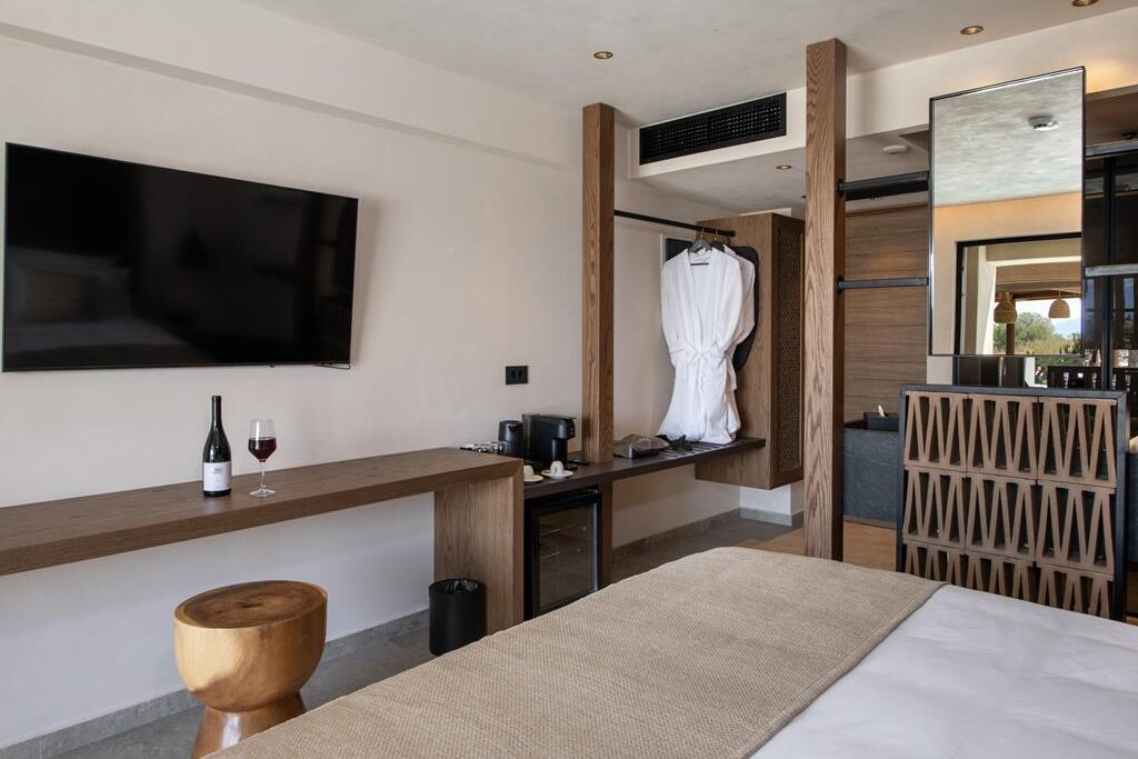 king size beds (twin beds – on request), Wi-Fi, A/C, fully stocked minibar (on request), electronic safe, co¬ffee and tea making facilities, iron, and ironing board